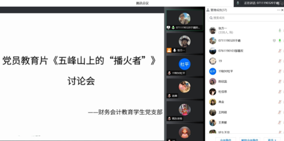 图为财务会计教育员工党支部线上讨论会截图