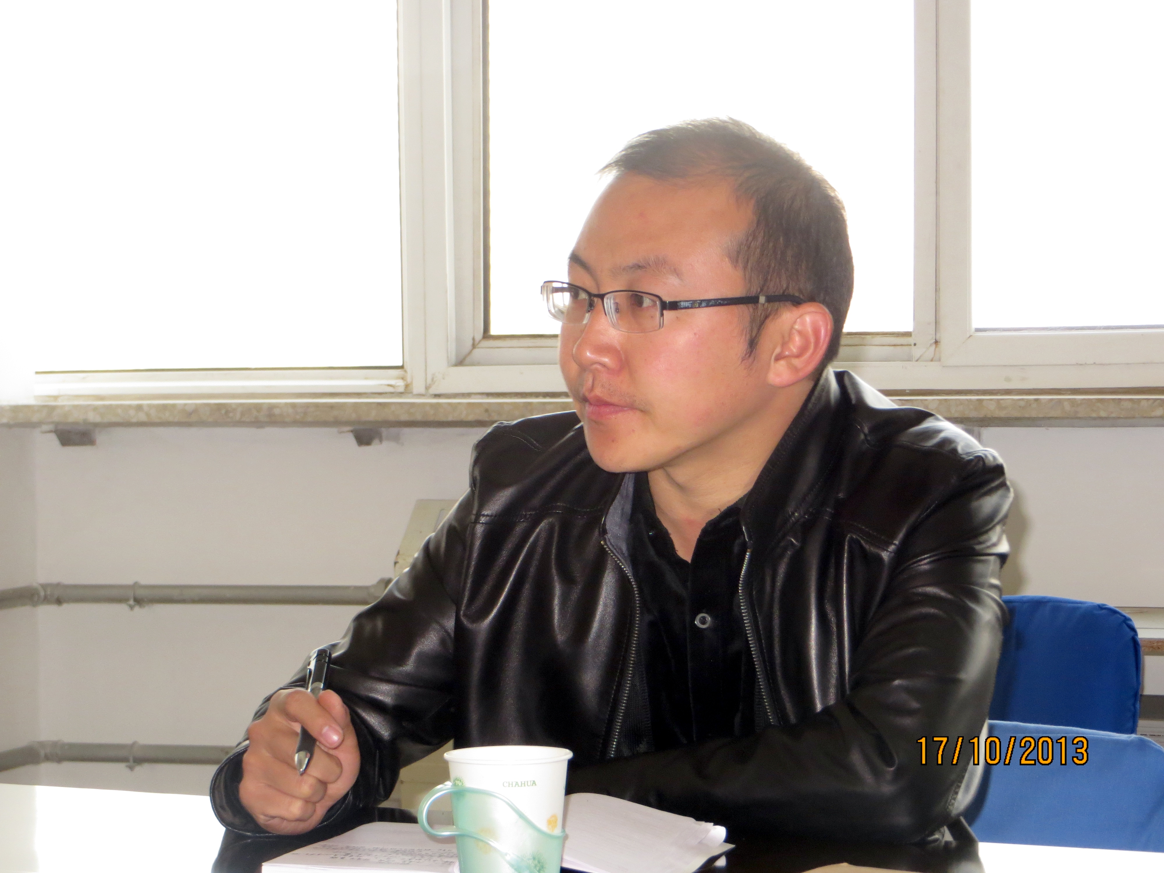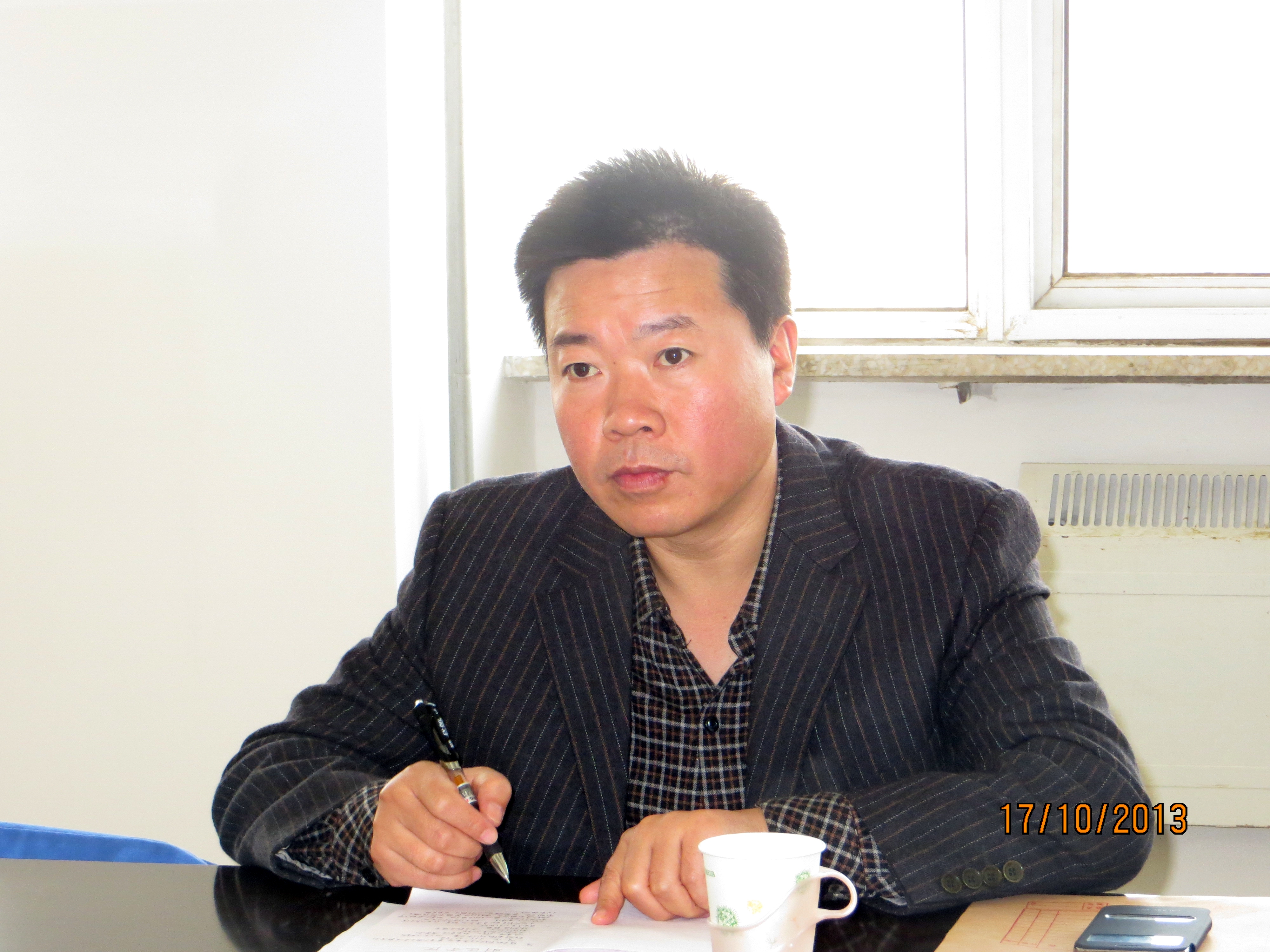 图为党副部长(左)、陈科长(右)听取汇报
