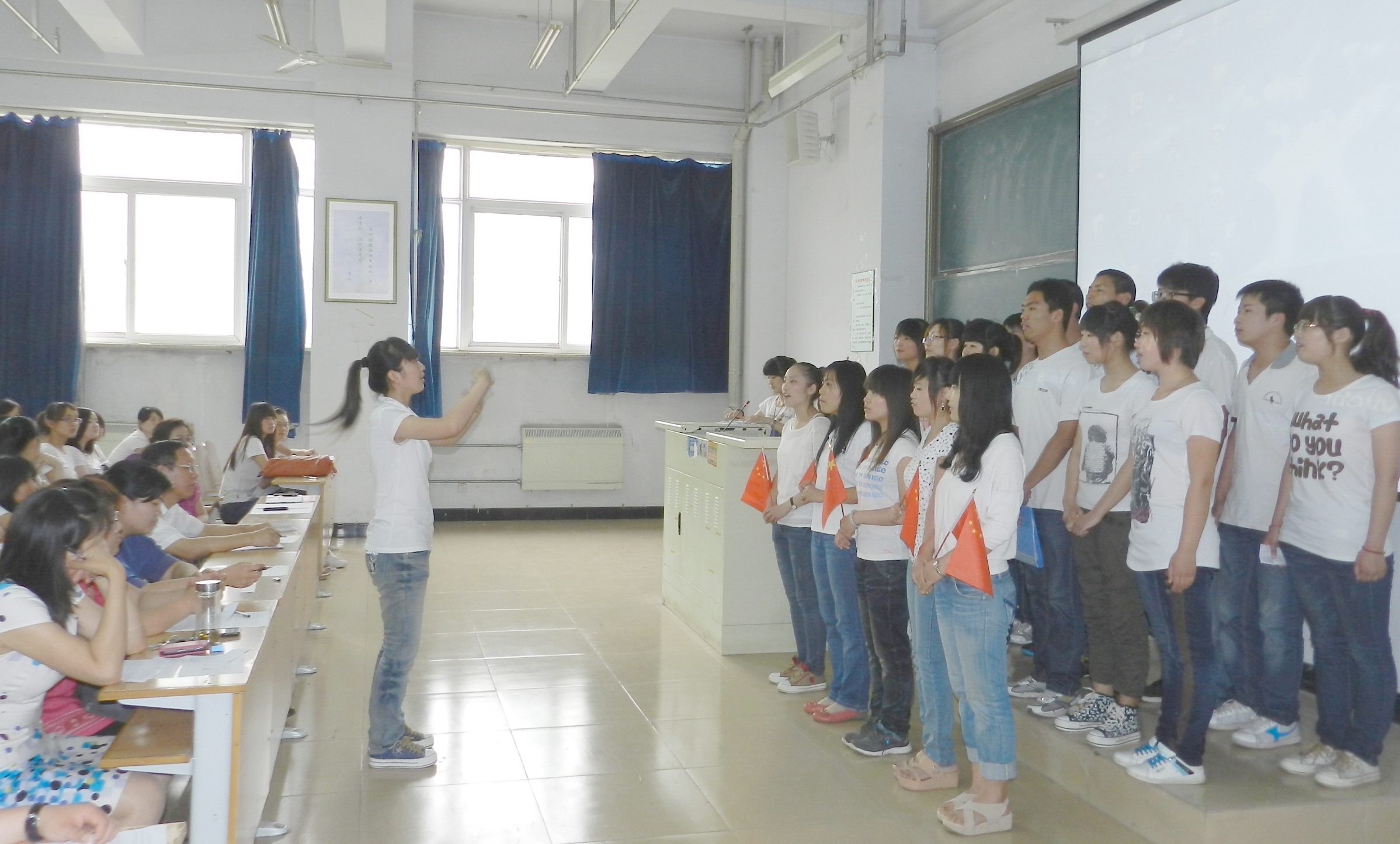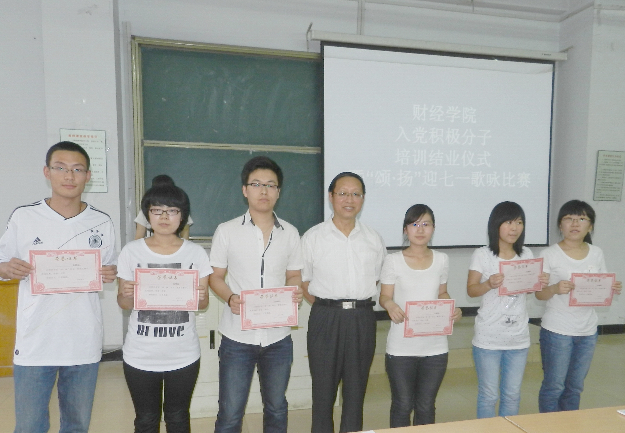 结业仪式结束后,举行了迎七一歌咏比赛。由各班入党积极分子组成的7支代表队和4个员工党支部代表队参加了角逐。同学们引吭高歌,缅怀党的丰功伟绩,共同庆祝中国共产党成立91周年。《歌唱祖国》、《保卫黄河》、《没有共产党就没有新中国》等一首首耳熟能详的歌曲此起彼伏,现场掌声一浪高过一浪。员工第四党支部代表队演唱的《红旗飘飘》以声情并茂的演唱震撼了全场,将比赛推向高潮。赛后,张书记向获奖代表队颁发了奖状。