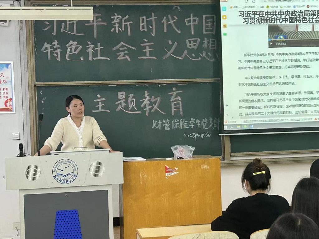 2023年5月6日,财管保险员工党支部在逸夫教学楼A311组织召开学习贯彻习近平新时代中国特色社会主义思想主题教育专题会议,34名党员参会,会议由党支部书记梁爽主持。
