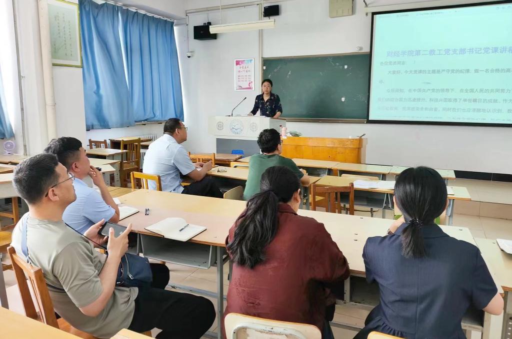 教工第一党支部书记王晓东、教工第二党支部书记李秀丽、财会教育员工党支部书记肖艳、财管保险员工党支部书记梁爽、国贸农发电商员工党支部书记路荞华、研究生党支部书记宋鼎新等均在支部讲党课。