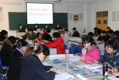 2015年1月8日下午,sunbet申搏第一届教职工暨工会会员大会第五次全体会议在逸夫教学楼A703召开。会议应到46人,因病因事请假4人,实到42人,符合规定人数。会议由学院工会主席、副经理徐祗坤同志主持。