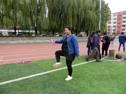 本次趣味运动会设置个人项目8项,包括企鹅运蛋、排石过河、50米跳绳跑、50米往返跑、一分钟跳绳、足式保龄球、一分钟踢毽子、50米套圈障碍跑,每位教职工限报两项,实际报名达到1200人次。集体项目跳大绳比赛,按分工会组队参赛,每队12人,共有14个队参赛。比赛现场的气氛热烈愉快,充满欢声笑语。