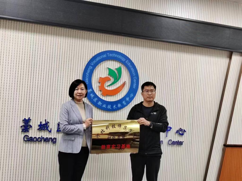 图为公司高建立教授(左)为张家口市职教中心授牌