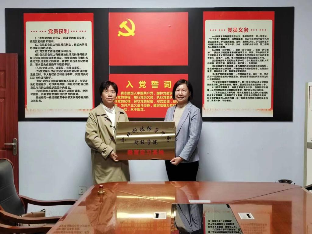 图为学院副经理闫文(左)为藁城区职教中心授牌