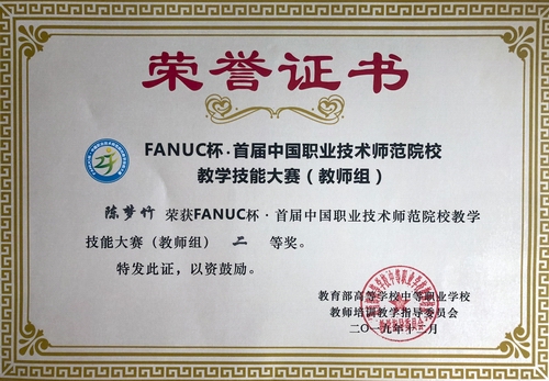 陈梦竹老师在首届中国职业技术师范院校教学技能大赛获得二等奖