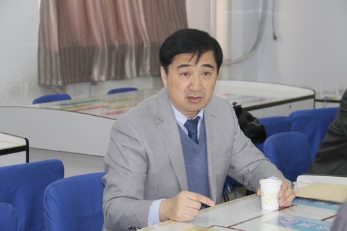 图为张东风高级经济师在座谈中