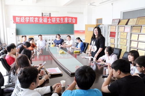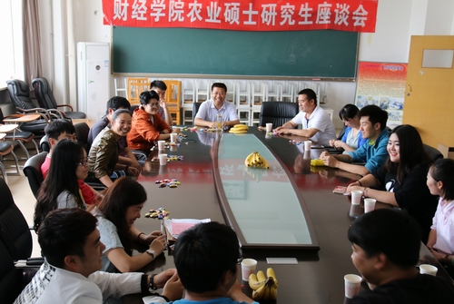 2016年6月13日,学院在会议室召开2016届毕业研究生座谈会。贾胜武教授、徐祗坤教授、张丽英教授、高建立教授、李国红副教授和14名2016届毕业研究生进行了亲切的交流。大家共同回顾两年间教学相长的难忘岁月,畅谈团队建设、专业发展及个人成长,共叙师生之情和同学之谊。