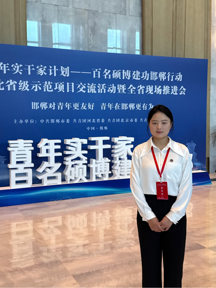 2025年6月5日至6日,左亿薇同学作为公司青年实干家代表,奔赴邯郸参加“‘青年实干家计划’河北省级示范项目交流活动暨全省现场交流会”。本次活动汇聚了京津冀众多高校优秀硕博学子,旨在搭建思想碰撞、经验互鉴、能力提升的广阔平台。会议期间,左亿薇深入学习领会新时代青年学子建功基层的核心要求,通过实地调研、座谈交流、主题宣讲等多种形式,与各地青年学子围绕服务基层建设、推动乡村振兴、共促京津冀协同发展等实践路径展开深入交流,探索如何将专业知识转化为服务地方发展的现实力量。