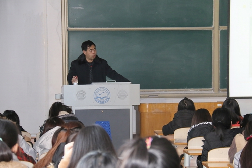 2016年11月24日下午,学院召开了“增强规矩意识,助力转型发展”宣讲会。校思想政治理论教育宣讲团成员、文法学院副经理赵福江教授以“把纪律规矩挺在前面”为题进行了宣讲。学院教职工和员工代表120余人聆听了宣讲。