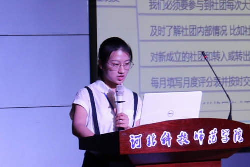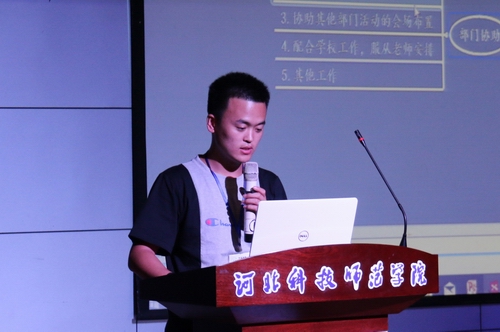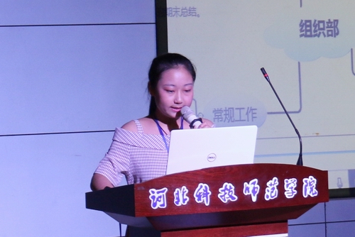 活动中,十位优秀部长候选人、十二个优秀部门候选单位负责人依次以思维导图、电子幻灯、视频等形式述职,从本职出发,就部门建设、所做工作、取得的成绩、不足及改进建议等多个方面进行汇报。评委依据工作汇报情况现场打分,和日常工作得分一起,按比例计算候选部长、部门的得分,评出优秀部长和优秀部门。最终,学院艺术团、社团联合会、组织部、自律部、青年志愿者协会被评为优秀部门,蒋庆巍、赵婷、曹惠、李梦微、杜瑜、韩笑梅获评优秀部长。