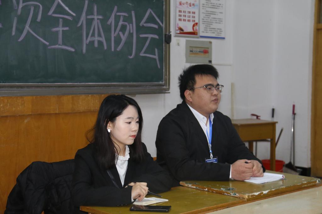 图为团委副书记霍佩瑶、刘艳朋主持召开会议