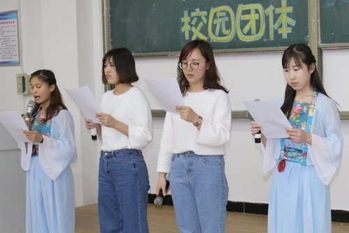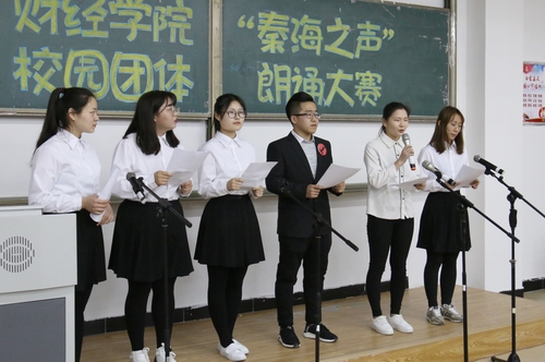 为加强校园文化建设,丰富校园文化生活,全面展现公司校园文化建设成果和员工文化艺术才华,同时为校首届秦海之声特色团体朗诵大赛选拔人才,2018年4月8日,学院在逸夫楼B206举办校园团体朗诵比赛。校金话筒冠军杜士杰、校英文电台台长、校金话筒十佳侯天奇、尹子豪、米丽香、张玉婵五位同学应邀担任评委。