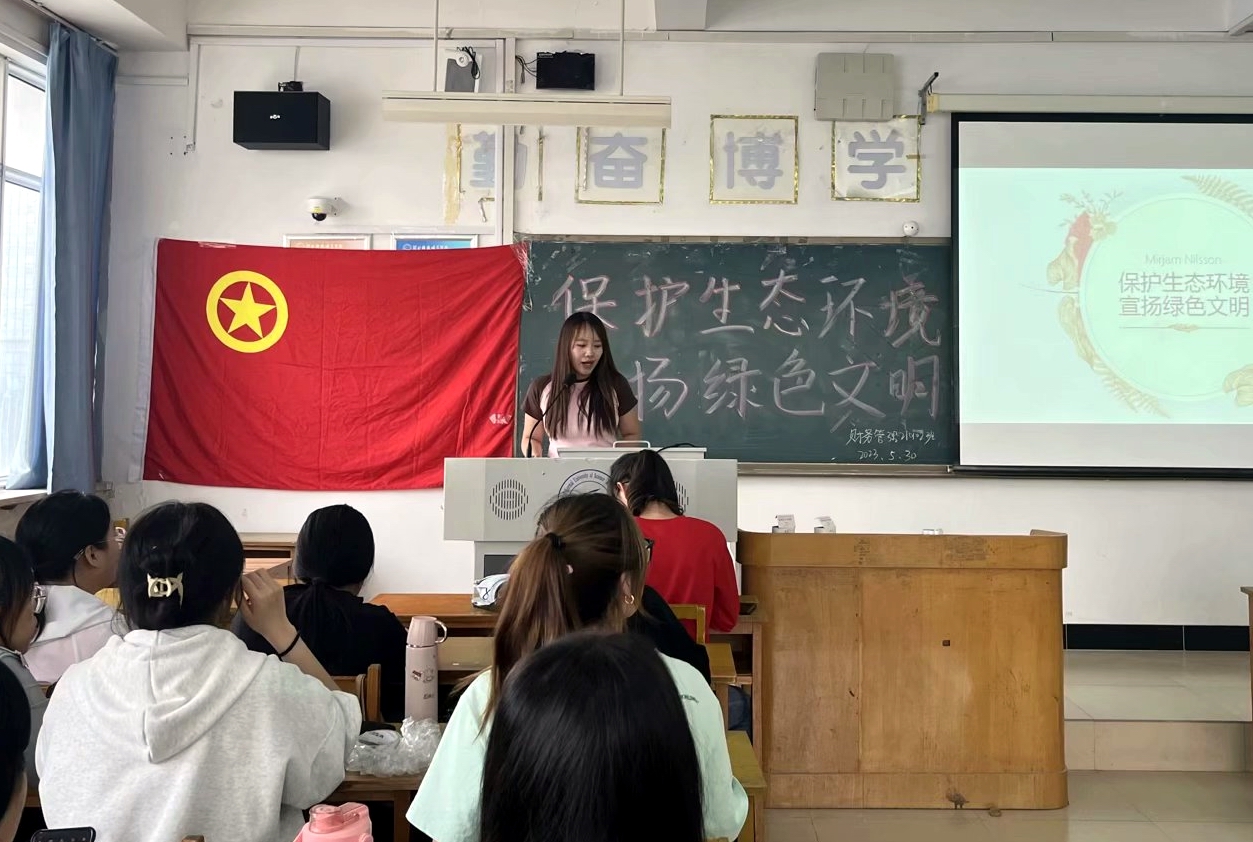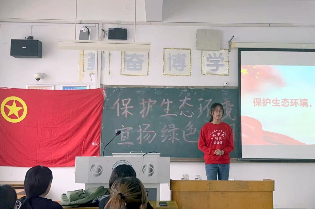 活动中,团支书孙金婵阐述了地球生态环境现状,地球生态环境保护的目的以及生态文明理念。校团委老员工理论宣讲团成员王一惠应邀做主题宣讲,讲述了习近平总书记关于保护生态环境、建设生态文明的重要论述,介绍了党和政府所采取的相应政策措施,鼓励同学们以实际行动保护生态环境,为生态文明建设做出应有贡献。员工代表赵子凡发言,呼吁同学们从我做起、从身边小事做起,为保护生态环境做贡献。最后,团支部发出“保护生态环境,宣扬绿色文明”倡议书,号召团员青年投身保护生态环境、建设生态文明伟大实践,学习环保知识,提升生态文明素养,践行习近平新时代中国特色社会主义思想,不负时代,不负韶华。最后,进行了环保知识抢答竞赛和垃圾分类等趣味活动,同学们踊跃参与,气氛活跃。(编审:王志安)