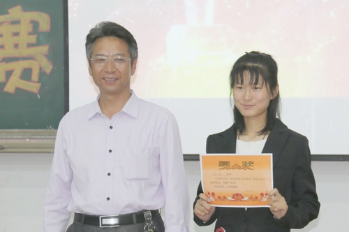 经过激烈比拼,侯天奇同学获得一等奖,史蒂雯、张玉婵同学获得二等奖,董长蕊、齐晓玉、杜瑜同学获得三等奖。与会领导、辅导员为同学颁发了奖状。(编审:李宝文)