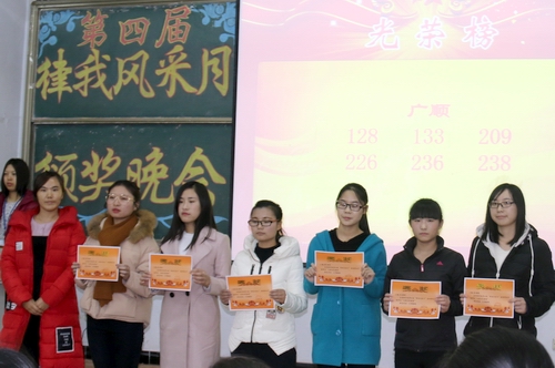 2016年12月9日晚,sunbet申搏在B104教室举行第四届“律我风采月”颁奖晚会。学院副经理徐祗坤教授,公司党委副书记、副经理李宝文出席颁奖晚会。学工办辅导员和近200名员工参加了颁奖晚会。