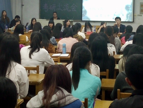 2016年5月10日晚,学院员工会在逸夫教学楼A510举办了以“传授经验,接力考研”为主题的考研交流会,邀请7位考研成功的2012级同学作为嘉宾讲述考研经历,分享考研心得,为现场同学答疑解惑。