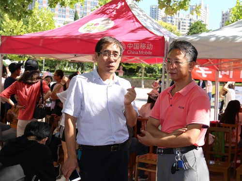 图为杜茂宝副经理(左)指导迎新工作