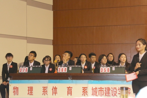 秦皇岛校区6个院系均派出了代表队参赛。每个代表队由两名辅导员(班主任)和三名员工干部组成,依次参加必答题、抢答题、风险题的比拼。为了扩大竞赛参与面,观众随机有奖答题外,还设计了观众必答题环节。观众回答的成绩直接计入本院系代表队总分。经过激烈的比拼,物理系和工商管理学院并列第一,由梁爽、颜芳芳带队的公司代表队和数信学院获得并列第二名的好成绩,城市建设学院获得第三名。(编审:李宝文)