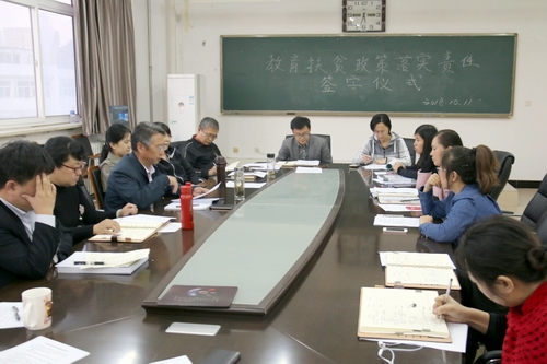 会上,李书记解读了教育扶贫政策,要求按照资助政策,确保建档立卡经济困难家庭员工应助尽助,确保家庭经济困难员工助学贷款应贷尽贷,确保家庭经济困难员工以及国家奖助学金的评选过程公开、公平、公正,确保助学贷款、国家奖助学金及时、足额发放到员工手中,不得截留、挪用、平分、提取,杜绝出现其他造成严重影响的教育扶贫事项。随后,他代表学院和全体辅导员、班主任以及各班班长、团支书签署了“教育扶贫政策落实责任状”。(编审:李宝文)