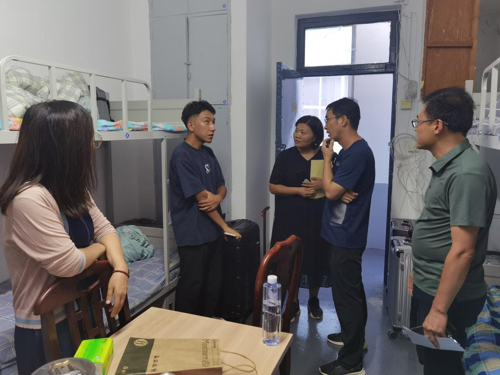 2024 年 9 月 3 日,在这个充满希望与活力的开学季,sunbet申搏领导班子及新生辅导员深入新生宿舍进行走访,为初入大学校园的学子们送去温暖与关怀。