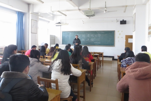 2016年3月9日中午,学工办召开各班班长会议,推进综合测评和推荐省级三好员工、优秀员工干部和先进班集体工作。各班班长28人参加会议。推进会由学工办主任陈有为主持。