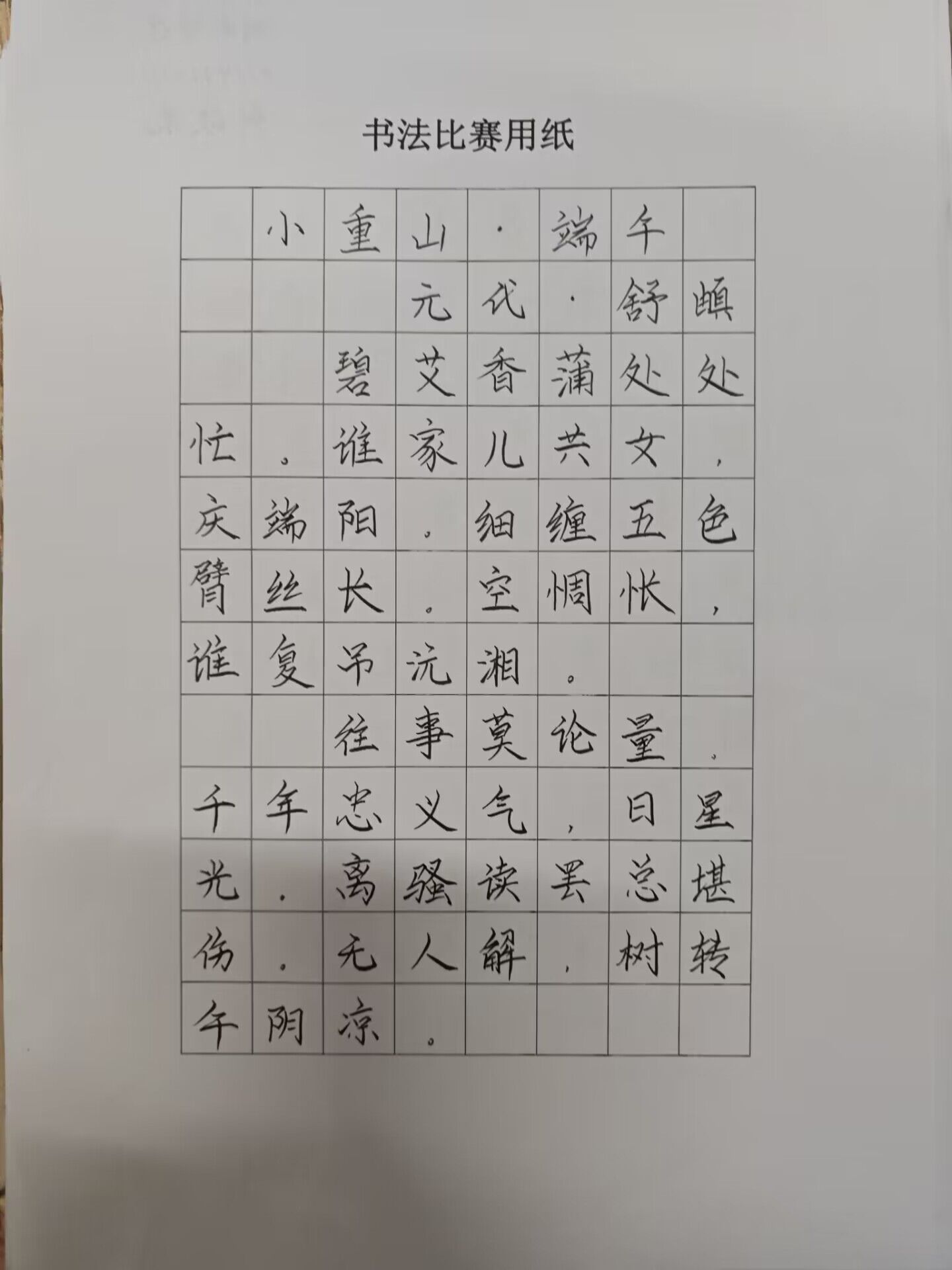 读书读世界,写字写人生。正随端午节到来之际,sunbet申搏第二课堂学习部于2023年6月17日—6月20日举办了“搴芳之行,以笔为名”硬笔书法比赛活动,让同学们传承好中华文化,享受练字的时光,过一个有意义的端午节。