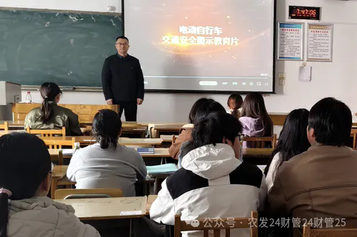 辅导员重申,骑乘电动自行车要遵守道路交通法规,要正确佩戴合格头盔,要骑乘正规上牌的电动自行车,禁止闯红灯、逆行、占用机动车道和超速骑行,禁止骑乘违规改装的电动自行车,禁止骑行中扎堆儿聊天、竞逐、耍酷、路怒行为,禁止骑行时使用手机等分心行为,禁止搭载12周岁以上的人员,防范大型车辆“内轮差”事故,防范“鬼探头”“开门杀”事故。