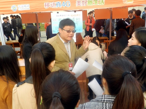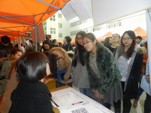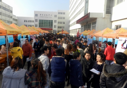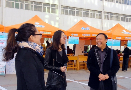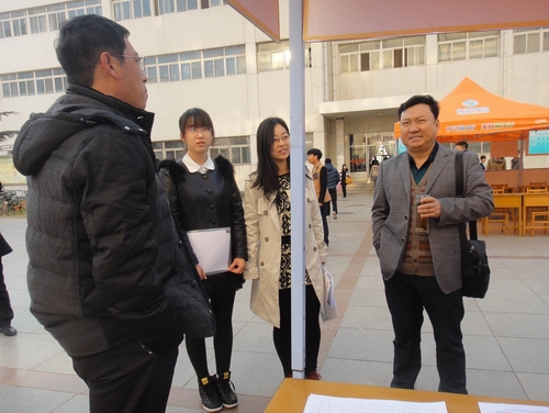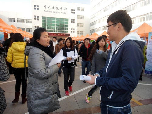 2014年11月8日上午,在学校人才招聘处的统一组织下,公司和秦皇岛校区其他院系一起在逸夫楼前举办了2015届毕业生就业双选会。本次双选会共有50余家企业前来选聘公司人才。学院学工办辅导员、毕业班班主任、专业带头人(负责人)和学院2015届毕业生400余人参加了双选会。学院全部党政领导现场指导工作。双选会在肖艳老师的精心安排下,井然有序。本次双选会前后,公司还举办专场招聘会11场,涉及企业23家。截至目前,公司共有133同学和用人单位达成就业意向。