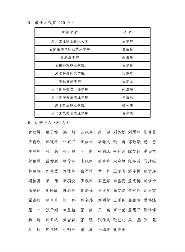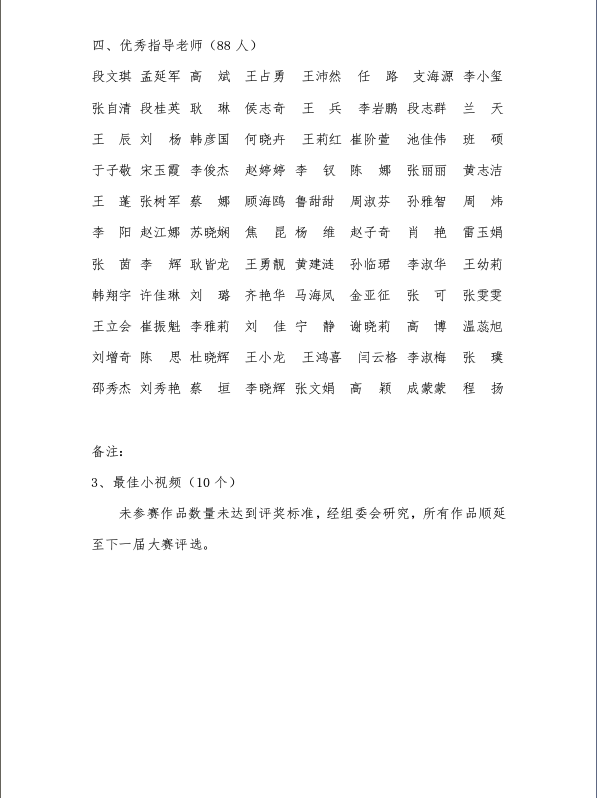 图为公布的大赛获奖名单