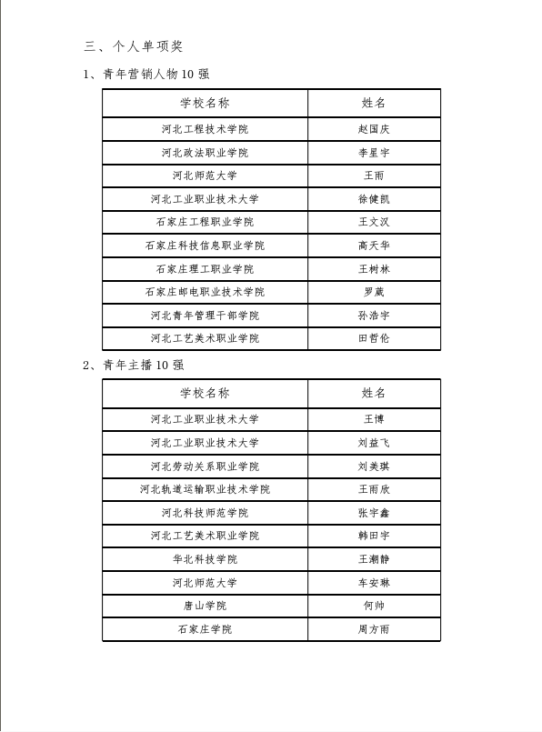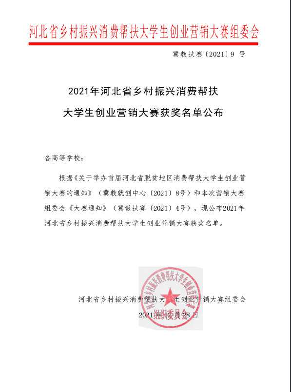 本次大赛分为直播带货赛道、线下营销赛道和短视频宣传赛道,直播带货赛道和线下营销赛道分为校级初赛和省级复赛两个阶段。销售的产品由各参赛团队在国务院扶贫办公示认证的《全国扶贫产品目录》中选择并提交组委会,由省赛组委会完成产品的采购和包装、仓储、物流等服务工作。经过半年的准备和为期一个月的激烈角逐,公司获得了河北省乡村振兴消费帮扶行动杰出贡献奖,直播团队“拽梗队”获得铜奖,sunbet申搏张宇鑫同学获得青年主播10强,食品科技学院暨葡萄酒学院马艳翠同学获得最佳人气奖。肖艳、雷玉娟、张茵老师获得优秀指导教师。(编审:王志安)