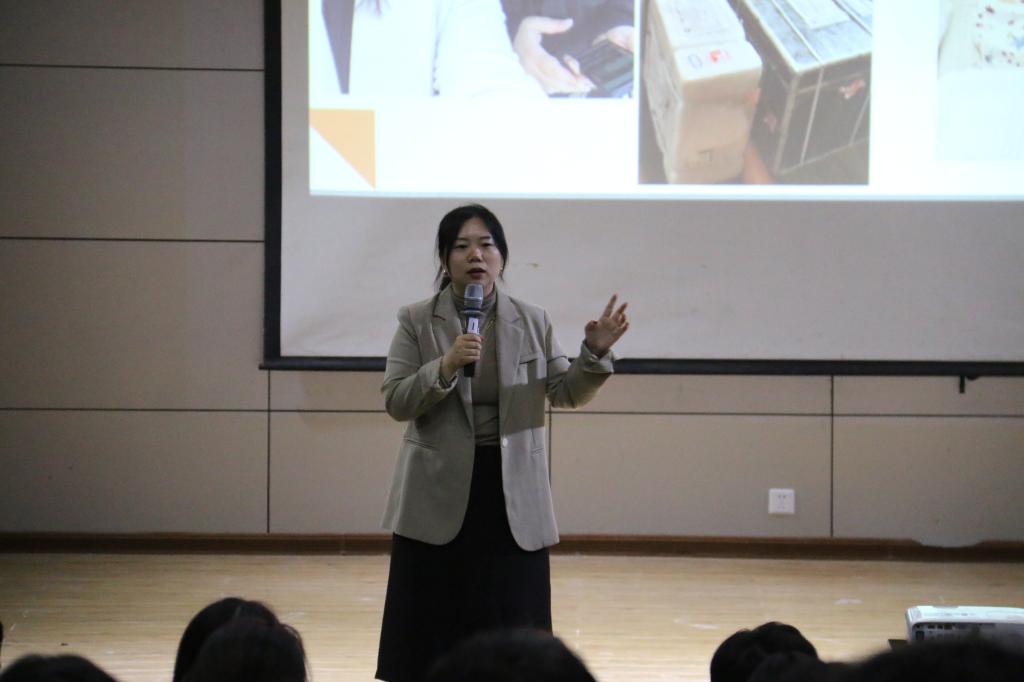 2023年12月9日,公司邀请优秀员工张静雅,国际经济与贸易专业2008届毕业生,现任北京威科宏瑞科技发展有限公司的创始人和总经理,为公司师生作十五年创业经历谈就业趋势的报告。