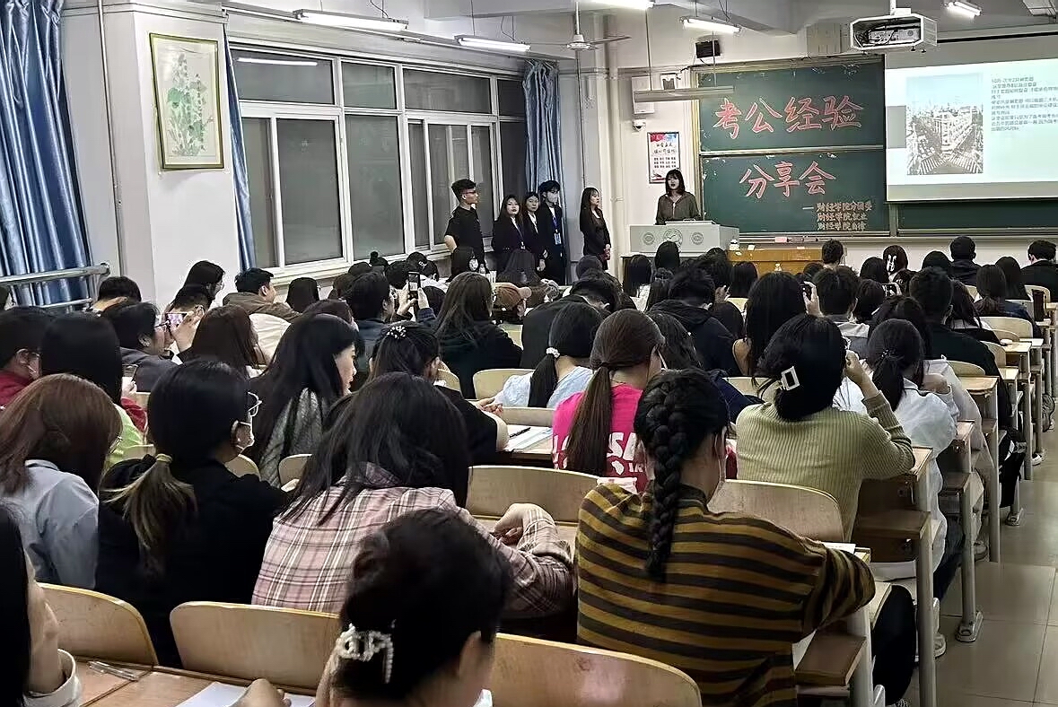 2023年5月11日晚,学院在逸夫教学楼A311教室召开公务员考试经验分享会。孙浩、林承龙,赵梓杰、任艳茹、王一诺、林乐佳、张佳茹等7名通过公务员和选调生考试的2023届毕业生应邀为130余名同学作经验分享和交流。本次交流会由学院分团委、员工会、就业自我指导委员会、自律委员会共同举办。