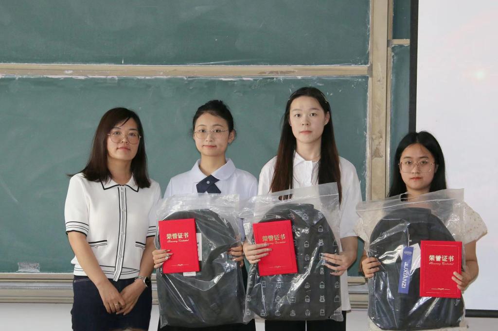 图为公司党委副书记于秀敏(左一)与获奖同学合影留念