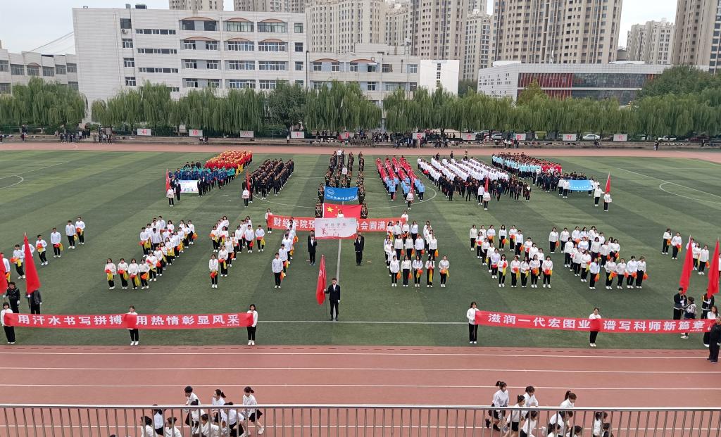 浮舟沧海、激扬运动志青春,立马昆仑、财经学子现葳蕤。秋高气爽、云卷云舒,观众注目,健儿争先。