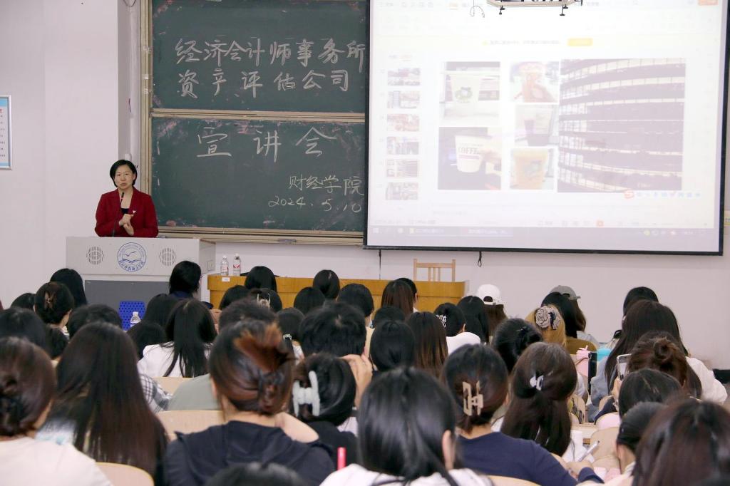 宣讲会上,企业代表田老师首先简要介绍了财会相关专业的就业形势,介绍了审计评估行业的特点和发展前景,热情鼓励同学们在审计评估行业求职就业。接着,田老师强调了在会计师事务所、税务师事务所和资产评估公司实习经历对审计评估行业就业重要性,进而对有意进入该行业实习、就业的同学们提出了中肯的建议。