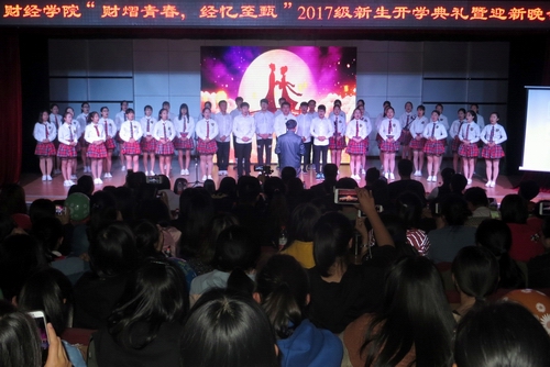 2017年10月16日晚,学院以“财熠青春,经忆至甄”为主题的2017级新生开学典礼暨迎新晚会在多功能厅举行。经理于红军,副经理徐祗坤,副经理杜茂宝,副书记、副经理李宝文和教师代表、辅导员同2017级新生300余人欢聚一堂,共同度过欢乐时光。