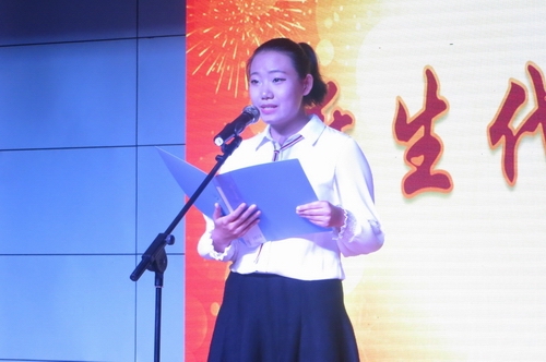 图为新生代表赵冰琪发言