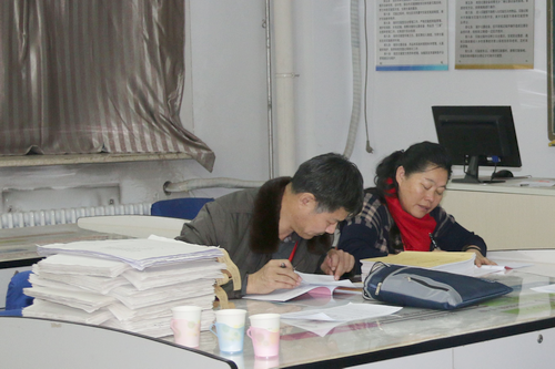 图为校自评专家查阅文档资料