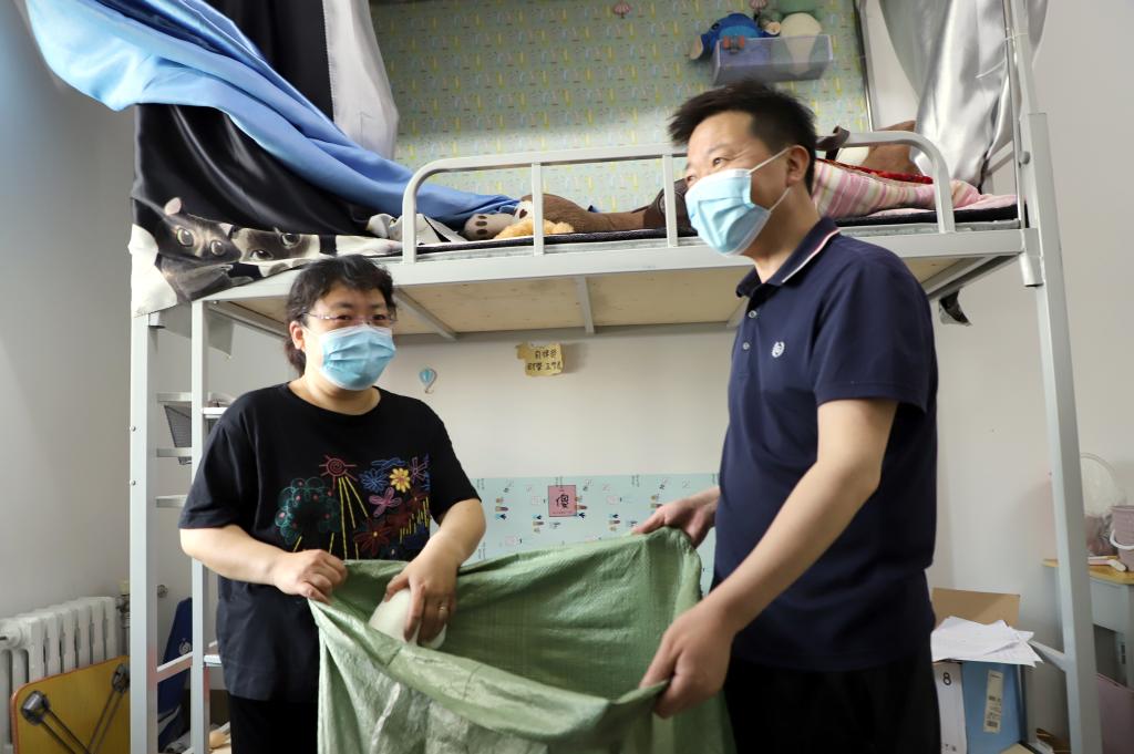 上午8时,师生拿着编织袋来到了员工宿舍楼,依据预先制定的打包托运方案,按照事先的分组和宿舍安排,投入到打包行李物品的活动中。各个组内分工明确,密切配合,有人负责与远在家中的毕业生视频连线,有人负责收集员工行李物品,有人使用编织袋打包并粘贴标签。大家忙而有序,有条不紊。针对物品的取舍、打包方式、快递公司选择等相关问题事无巨细与毕业生多次确认,充分考虑毕业生们的意愿和感受,尽力把好事做好。经过师生共同努力,仅用一天时间,把230多名毕业生的行李物品打包完成。随后,毕业班辅导员、班主任和快递员取得联系,共同完成每个毕业生行李物品托运的最后一步。
