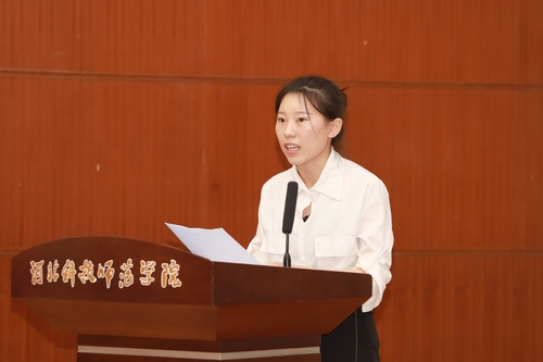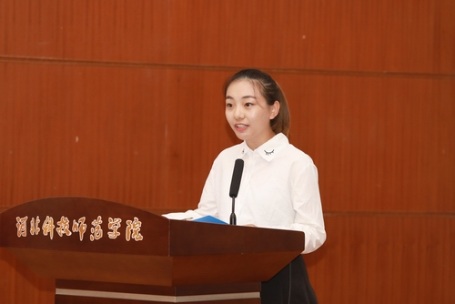 李国红老师代表全院教师提出了殷切期望,赵婷同学代表老生热情寄语,马雨露同学代表新生郑重表态。