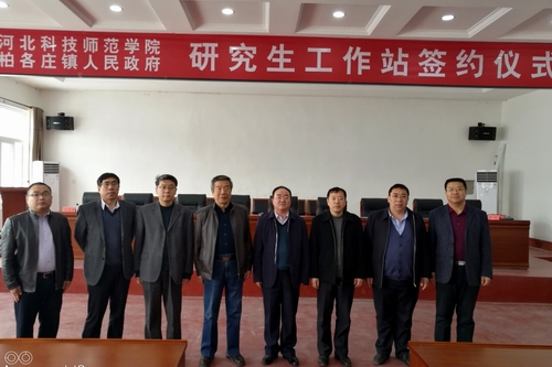 2019年3月28日,校研究生部副主任李祥龙教授、sunbet申搏经理于红军教授、副经理徐祗坤教授和杜茂宝教授等一行五人赶赴滦南县柏各庄镇,与当地镇政府签署了研究生工作站协议并举行了授牌仪式。