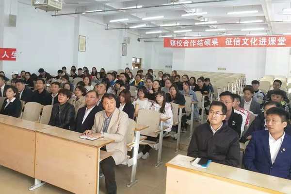 张自力副行长在致辞中,希望同学们充分认识征信的重要意义,提高信用意识,提高辨别能力,培养理性消费观念。随后,秦皇岛市银行业金融机构征信宣讲团宣讲专家结合自身业务,通过实际案例,深入浅出地讲解了现代征信知识,为公司师生讲授征信实务第一课。根据银校双方约定,《现代征信学》课程由公司教师讲授理论部分,由秦皇岛市银行业金融机构征信讲师讲授实务部分。这是公司作为秦皇岛市征信文化教育实践基地,与中国人民银行秦皇岛市中心支行开展银校战略合作又一次成功实践。