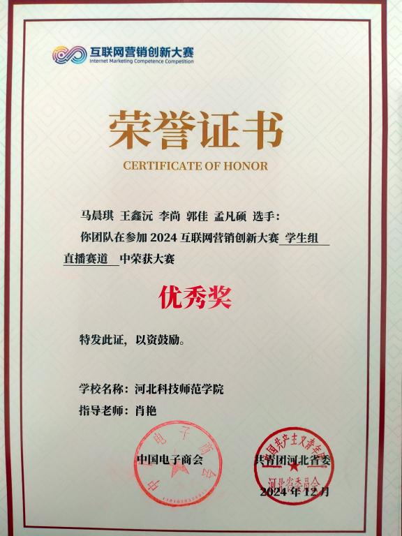 公司员工获得互联网营销创新大赛省赛优秀奖