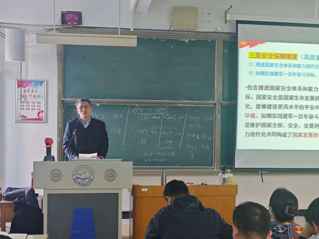 会上,杜立文副教授作了题为《在接续奋斗中谱写中国式现代化新篇章——深入学习贯彻党的二十届四中全会精神》的精彩报告,报告围绕深刻领会党的二十届四中全会的重大意义、鲜明特点、主要内容和践行要求等四个方面重点内容,深入浅出地系统解读了党的二十届四中全会召开的历史背景、“十四五”时期我国发展取得的重大成就和“十五五”时期经济社会发展的指导方针和主要目标。