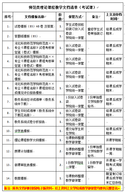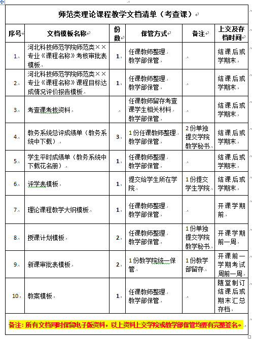 图为师范类理论课程教学文档清单(考查课)