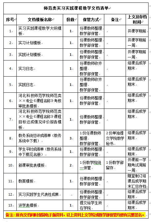 图为师范类理论实习实践教学文档清单