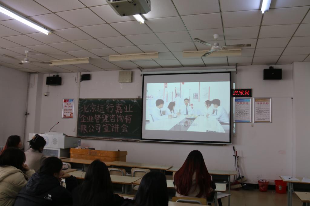 2024年10月20日下午,北京远行嘉业企业管理咨询有限公司来sunbet申搏进行招聘宣讲,在A503成功开展。该公司以“中国·运行”为品牌,近年来在房地产领域开拓了多所城市,展现了强大的市场影响力和发展潜力。