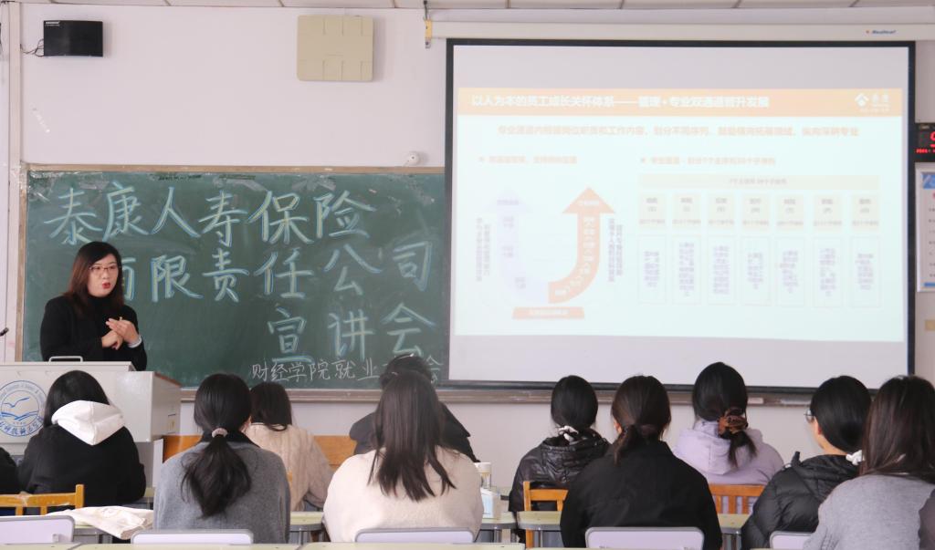 为帮助财经类学子精准对接优质就业资源,明晰大健康产业就业方向,2025年10月21日sunbet申搏特邀泰康保险集团子公司——泰康人寿保险有限责任公司在A509教室举办2026年校园招聘专场宣讲会。本次宣讲会以“长寿时代 共筑未来”为主题,吸引众多员工参与。